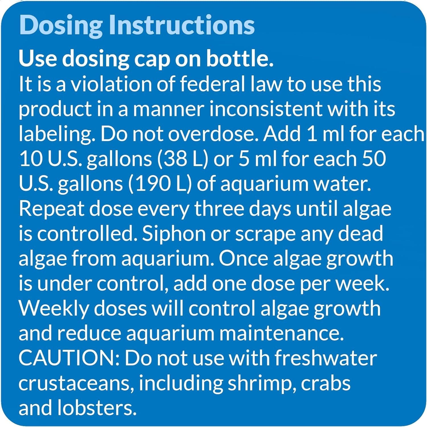 - Weekly doses will control algae growth and reduce aquarium maintenance. CAUTION: Do not use with freshwater crustaceans including shrimp, crabs, and lobsters.