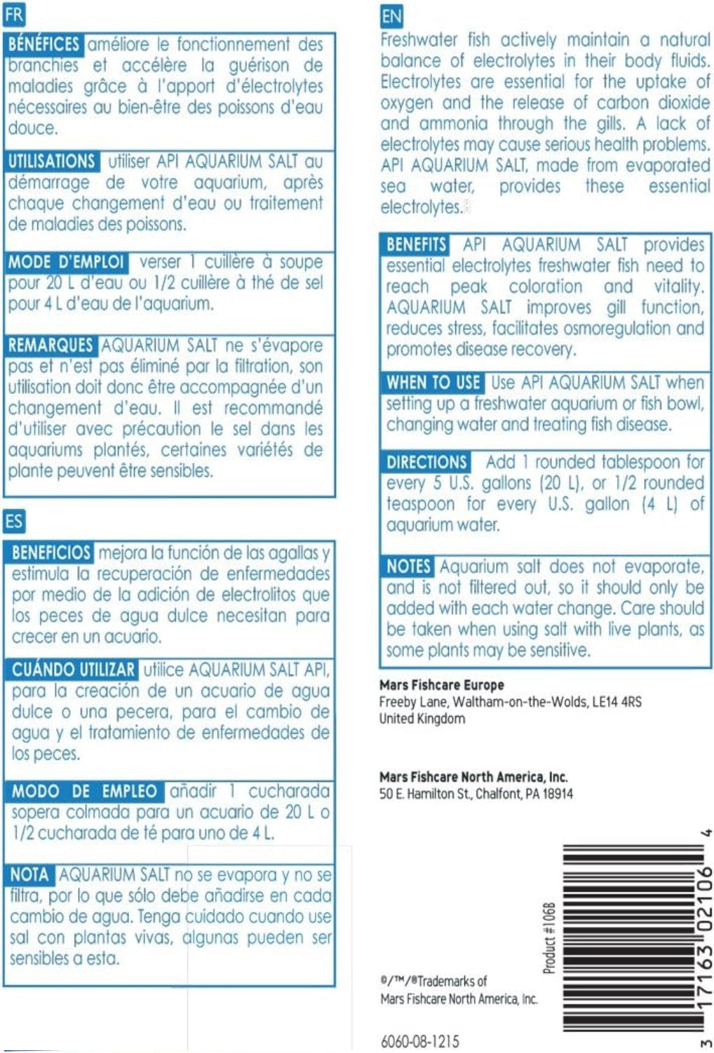 - API AQUARIUM SALT is made from evaporated sea salt and is a must-have for your aquarium! AQUARIUM SALT promotes fish health by improving gill function, making it easier for fish to breathe.