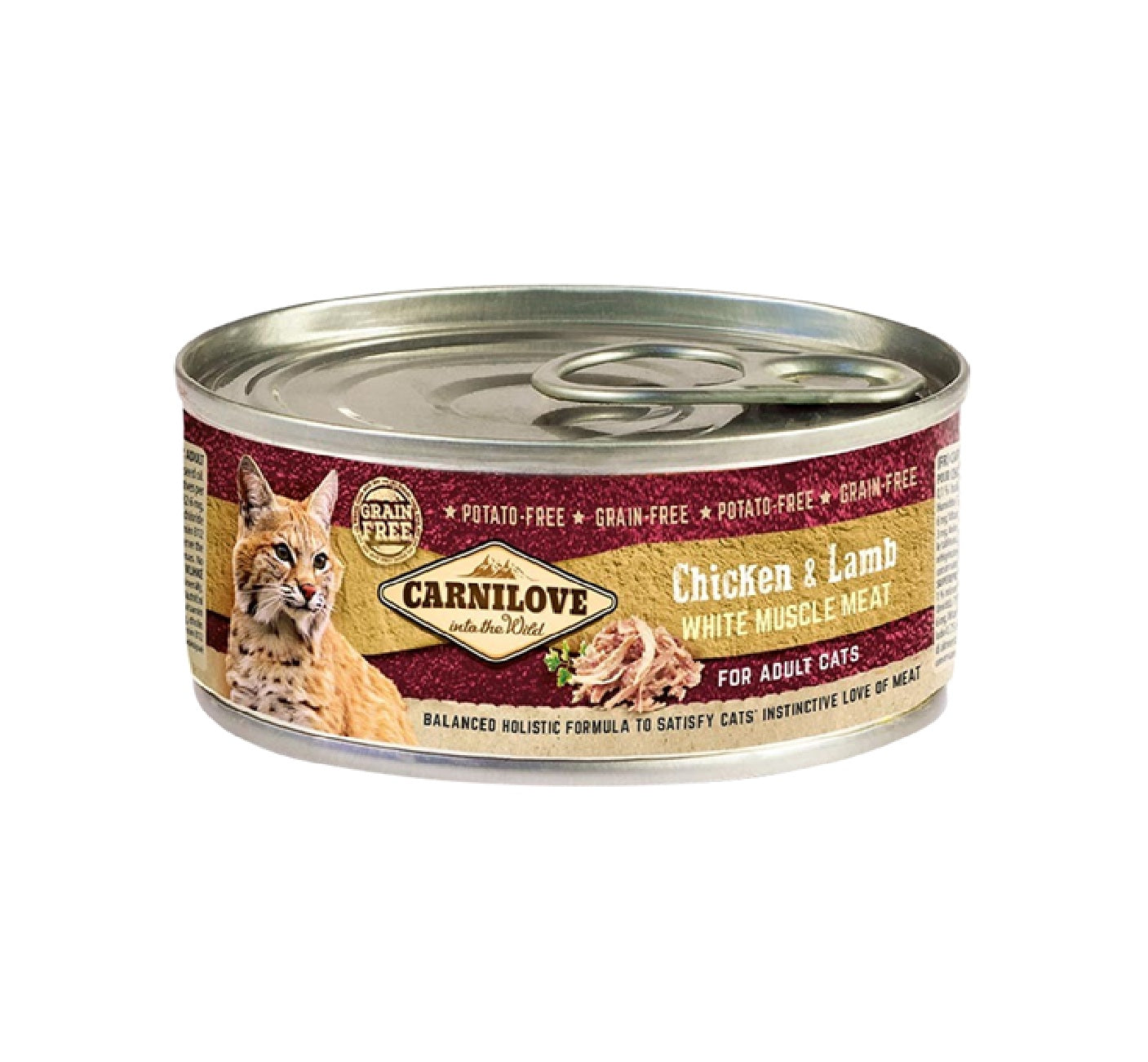 Grain-Free & Potato Free Chicken & Lamb White Muscle Meat for Adult Cats. Complete Super Premium Wet Food for Adult Cats.