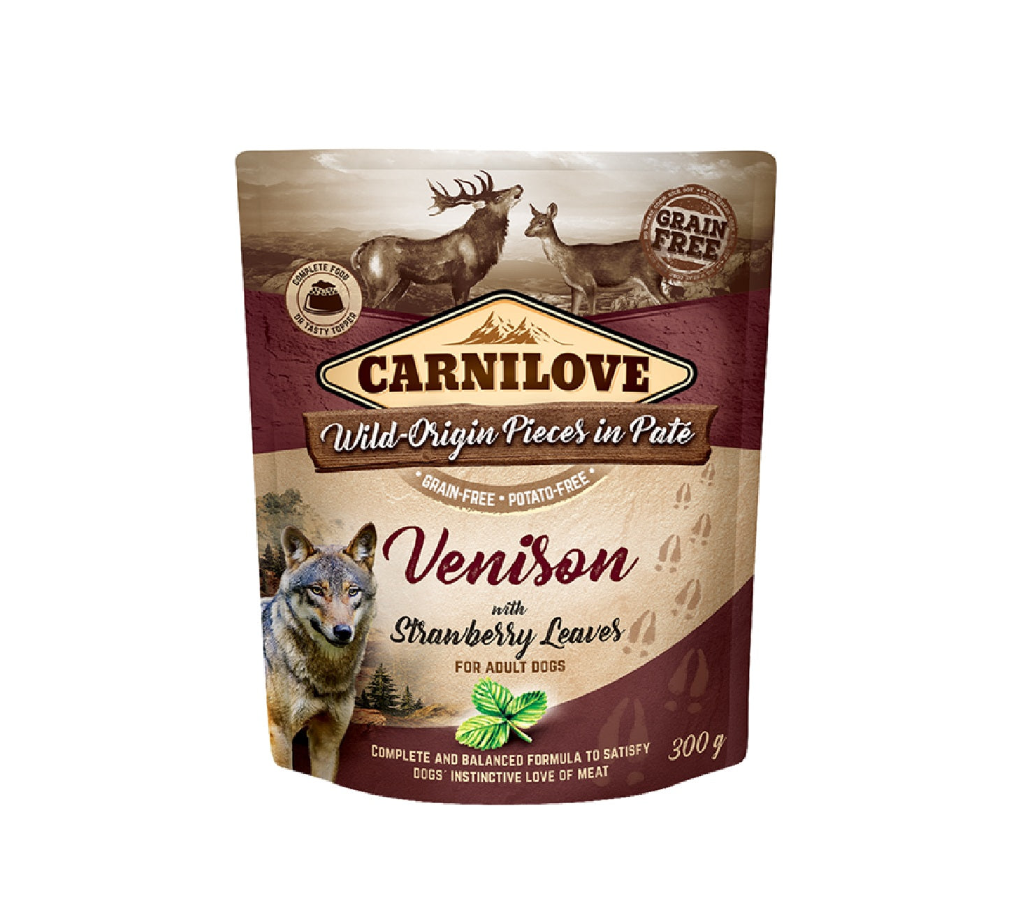CARNILOVE Venison with Strawberry Leaves for Adult Dogs (Wet Food Pouches) 300g