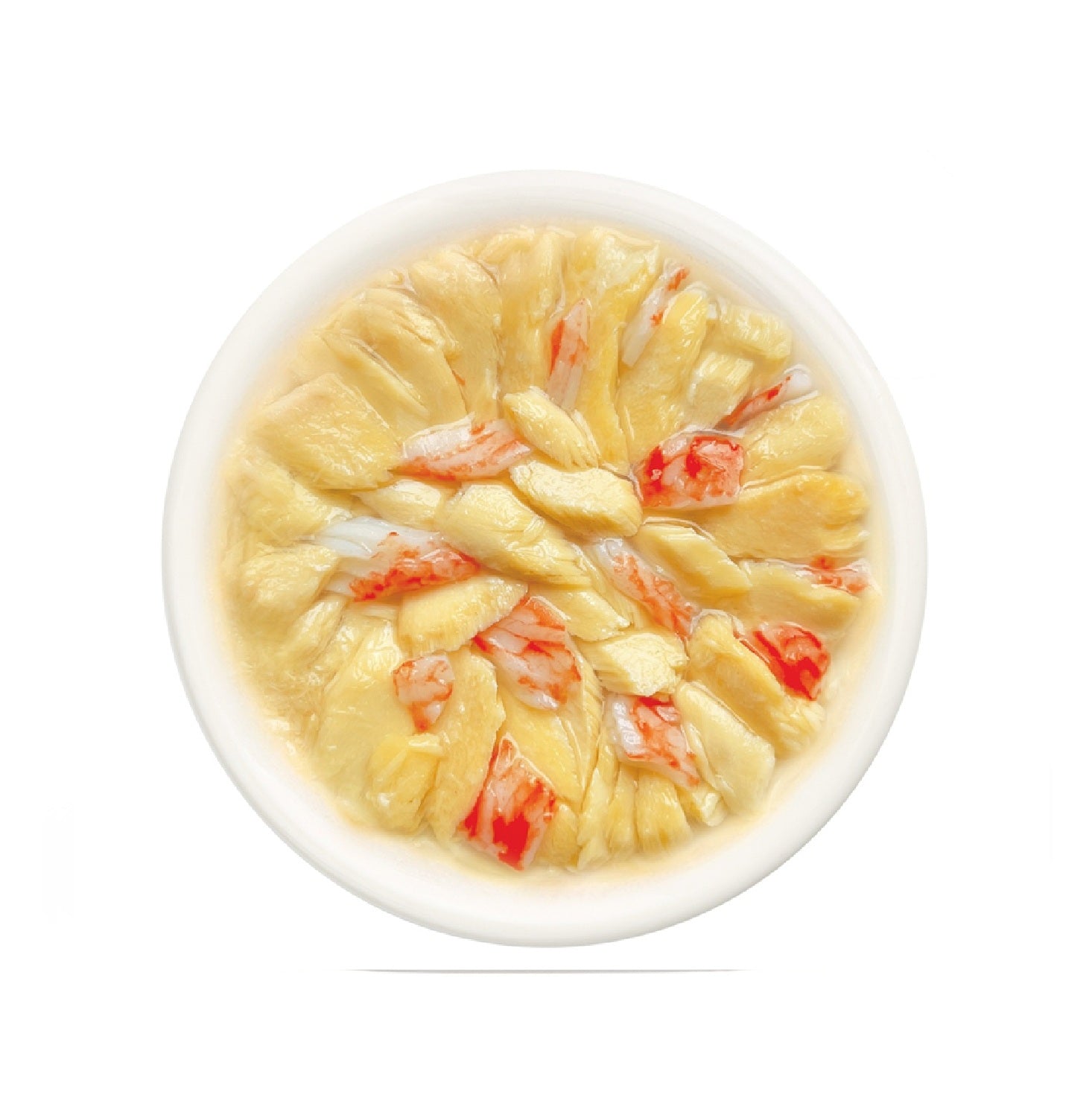 Salmon is a rich source of omega-3 fatty acids, which support skin and coat health. Prebiotic FOS promotes digestion and maintains healthy gut flora. Crab sticks add extra flavor and texture, making the food even more appetizing. Chicory reduces odor from cat feces, helping to maintain freshness around the litter box.