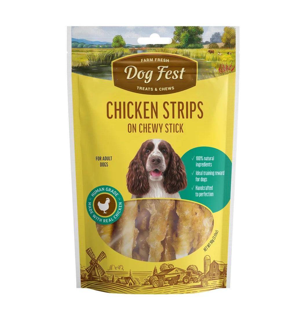 DOG FEST Chicken Strips On Chewy Stick For Adult Dogs - 90g