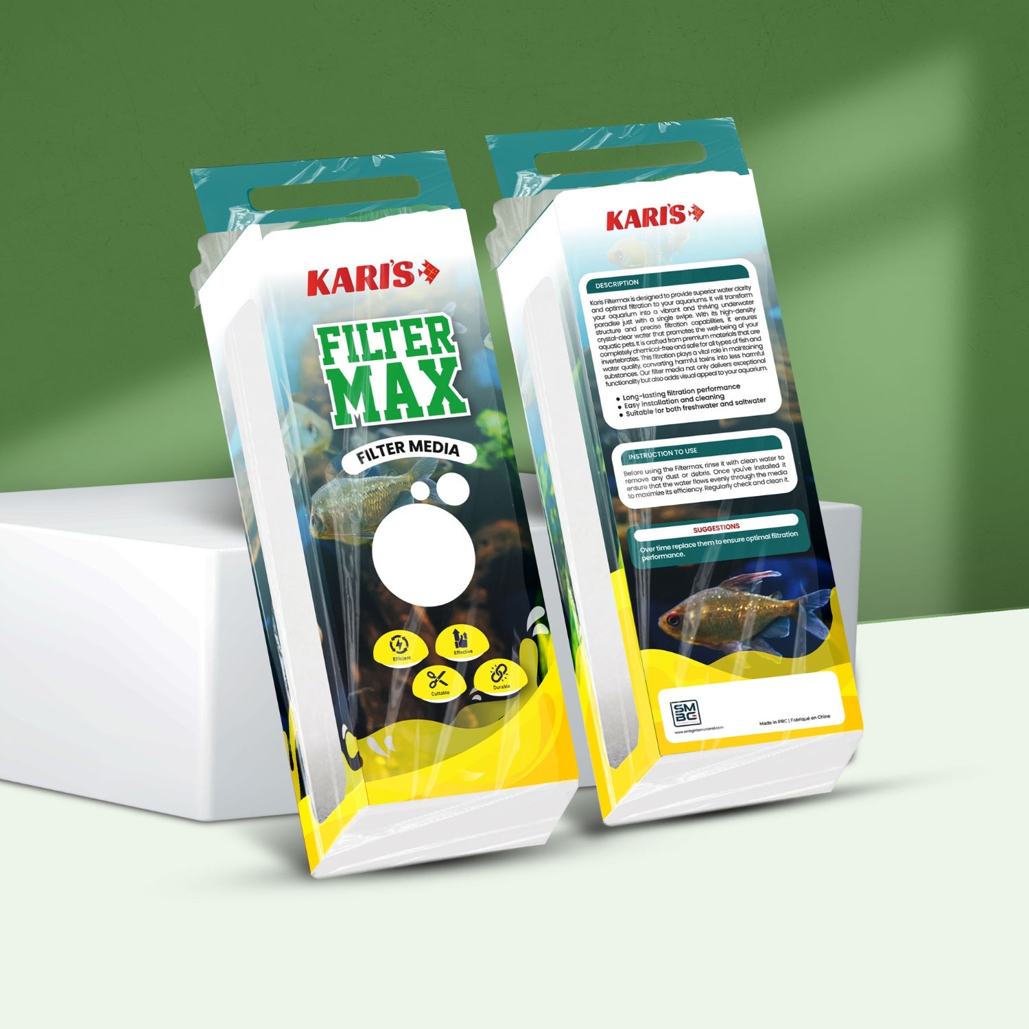 Karis Filtermax is designed to provide superior water clarity and optimal filtration to your aquariums. It will transform your aquarium into a vibrant and thriving underwater paradise just with a single swipe. With its high-density structure and precise filtration capabilities, it ensures crystal-clear water that promotes the well-being of your aquatic pets. It is crafted from premium materials that are completely chemical-free and safe for all types of fish and invertebrates. This filtration plays a vital role in maintaining water quality, converting harmful toxins into less harmful substances. Our filter media not only delivers exceptional functionality but also adds visual appeal to your aquarium