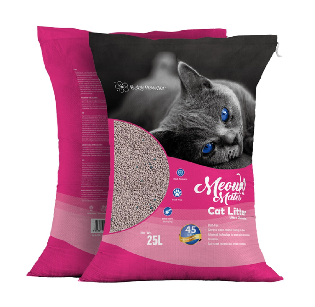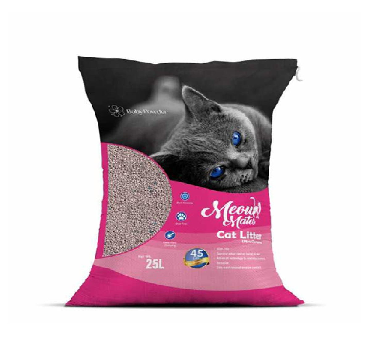 MEOW MATES Bentonite Cat Litter - Baby Powder Scent 25L (20kg)