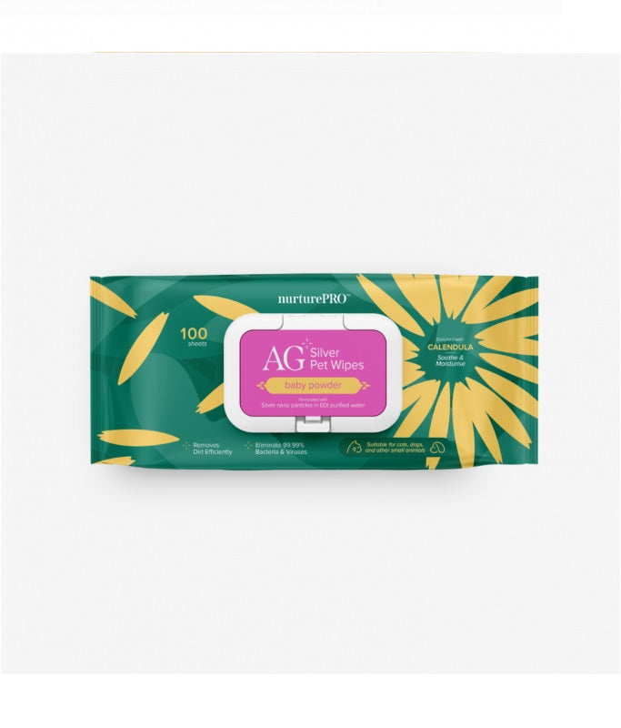 NURTUREPRO AG+ Silver Pet Wet Wipes -Baby Powder (100 Sheets/ Pack)