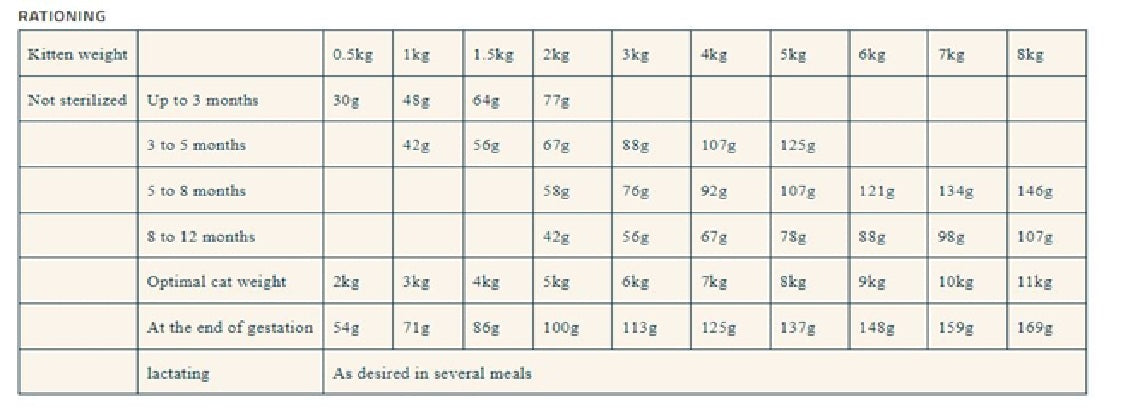 kittens, female cats at the end of gestation or lactation and sterilised kittens