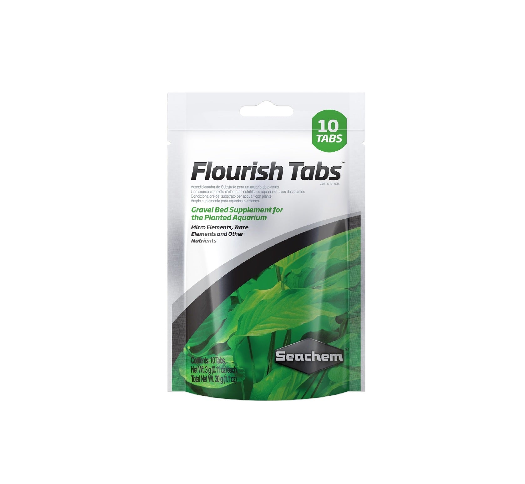 Insert one Flourish Tab in the gravel for every 10-15cm (4-6in.) radius. A standard 10 gallon aquarium requires 6 tabs. Distribute the tablets evenly throughout the gravel bed. Push each tablet midway into the gravel bed. Add new tablets once every three to four months for optimal plant growth.