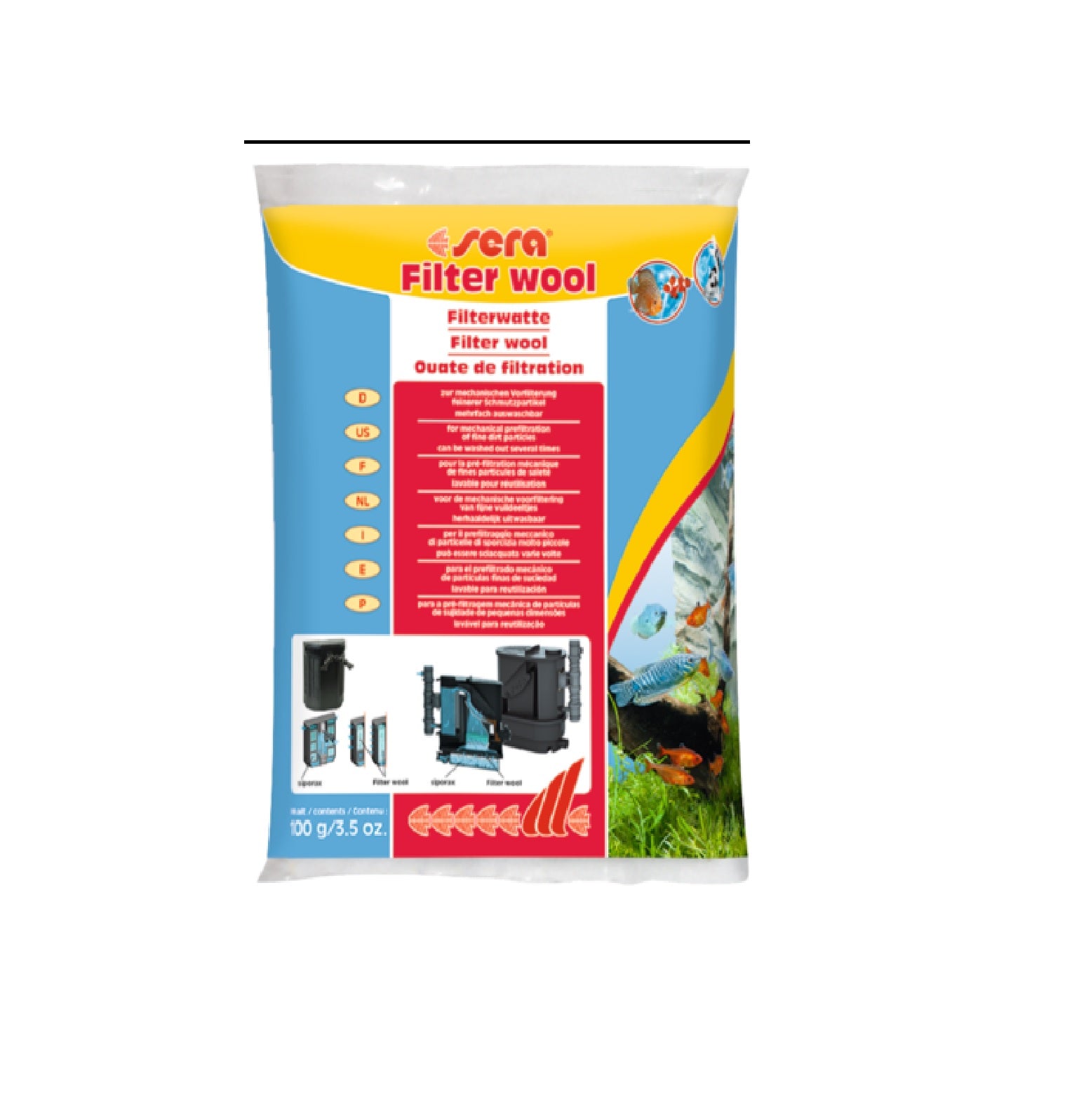 Sera filter wool can be washed out several times.