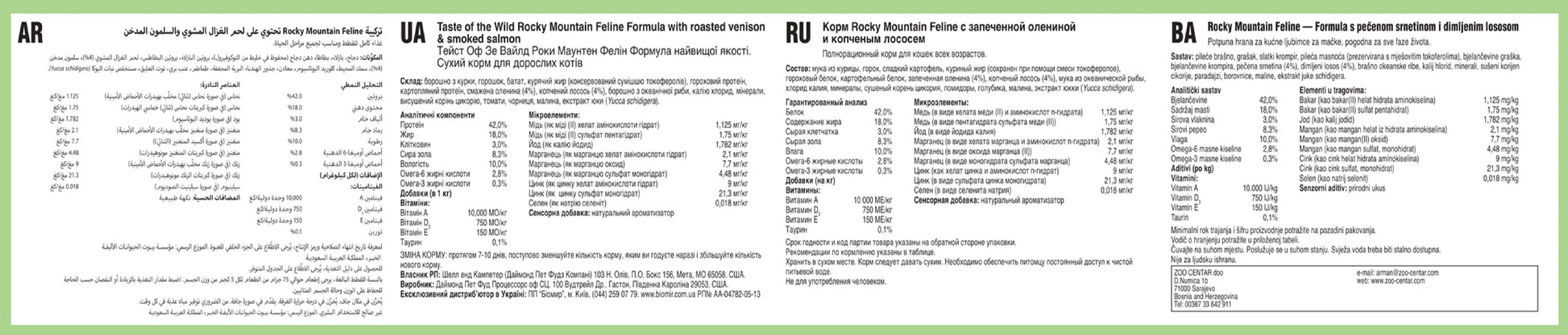 Taste of the Wild Rocky Mountain Feline Recipe is formulated to meet the nutritional levels established by the AAFCO Cat Food Nutrient Profiles for All Life Stages.