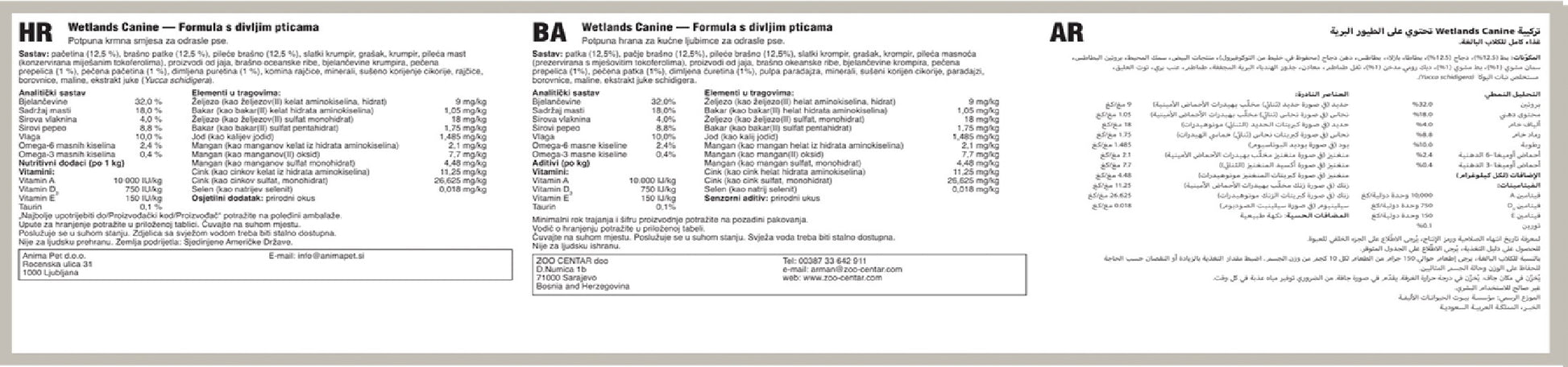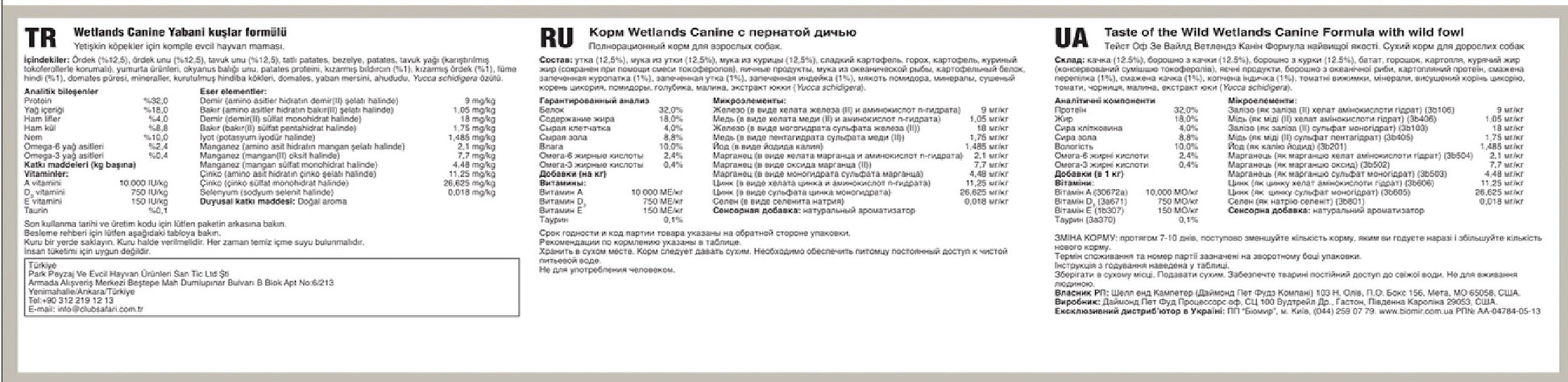 Taste of the Wild Wetlands Canine Recipe is formulated to meet the nutritional levels established by the AAFCO Dog Food Nutrient Profiles for maintenance.