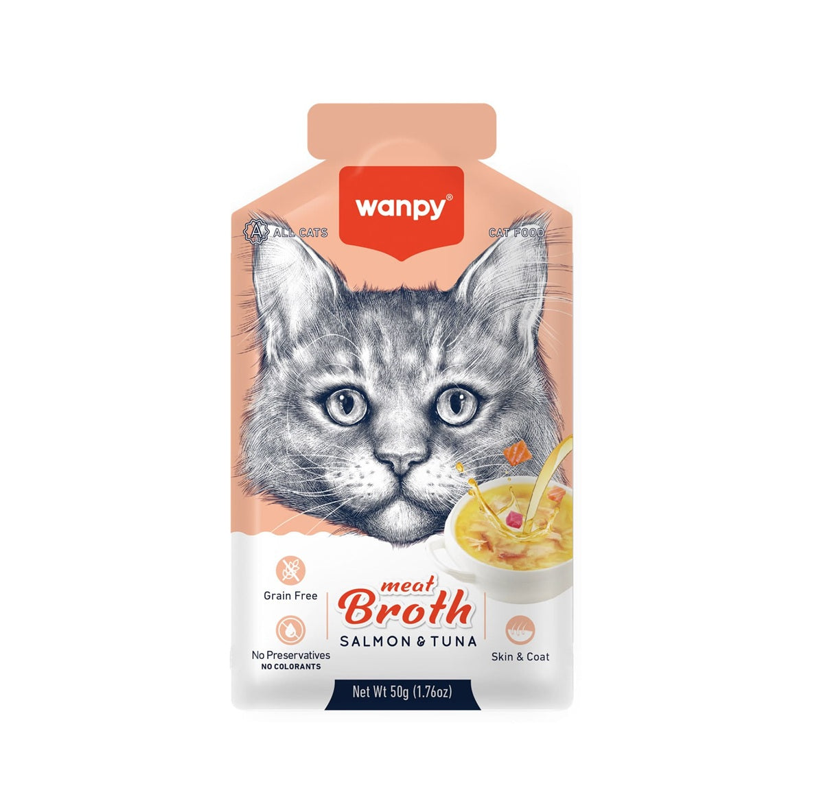 Tuna broth, salmon, tuna, salmon oil, egg white, seaweed, guar gum, tapioca starch, calcium carbonate, taurine, salt, glycerine, Vitamin E.